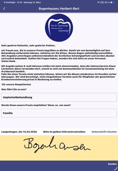 Lassen Sie dass Ihre Patienten machen - mehr Spaß für sie, weniger Arbeit für Sie! Anamnesen, Vereinbarungen, Informationen - alles vom Patienten unterschrieben in der Akte! Genau so einfach
